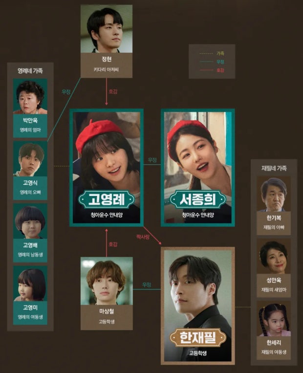 친구, 사랑, 가족, 경쟁 구도가 복합적으로 얽힌 청춘 드라마답게 관계도만 봐도 흥미진진한 구성이 특징입니다.